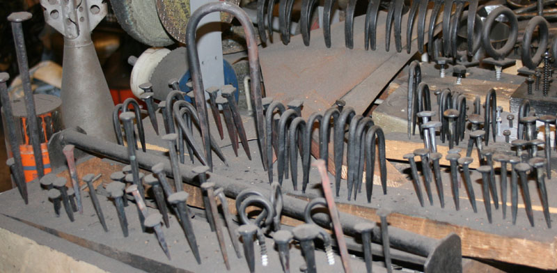 Esimerkkinä lukuisa joukko sepän takomia nauloja ja aspeja.